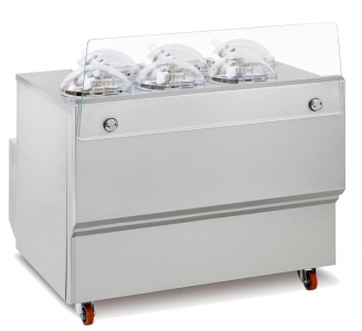 Výkoný třípákový mobilní výrobník je špičkou mezi stroji na točenou zmrzlinu. Stroj má 2 samostatné řídící jednotky, takže každá polovina stroje pracuje zvlášť. Kromě točené zmrzliny stroj zvládne i mražený jogurt, sorbetta, mražené dezerty či zmrzlinu z čerstvého ovoce. Produkce stroje je až 570 porcí/hod.