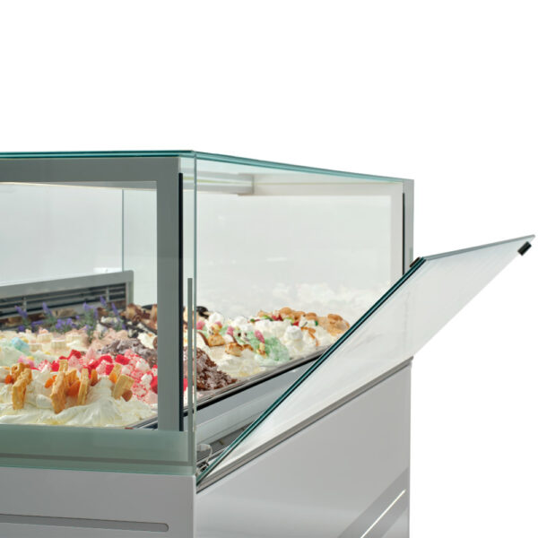 Kvalitní italské vitríny na zmrzlinu s moderním designem, vynikající kvality. Kvalitní izolace, temperovaná skla, dynamický oběh, elektronicky řízené, automatické odtávání.
